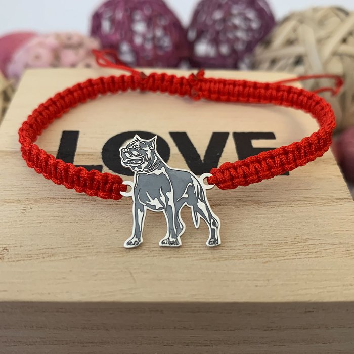 Bratara Pitbull – Argint 925, snur impletit reglabil! Cutie bijuterii/saculet CADOU! Transport gratuit la comenzi peste 200 lei! Certificat de autenticitate!