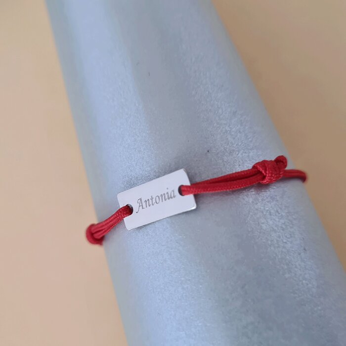 In traditia populara ata rosie este considerata un talisman care te fereste de deochi. De aceea, parintii obisnuiesc sa prinda ata rosie la incheietura mainii bebelusului. Noi am introdus acest concept intr-o bratarica simpatica, special creata pentru cel mic. Gravarea unui nume sau a unei date pe bratara este gratuita! Dupa plasarea comenzii veti fi contactat de o colega din echipa Chic Bijoux pentru toate detaliile necesare personalizarii produsului. Bratara este creata din Aur Alb de 14K prin taiere si gravare laser, avand dimensiunea de 5×10 mm si fiind atasata unui snur de matase vegetala, marime reglabila. Un cadou deosebit! Gramaj aproximativ AUR 585: 0.23 grame Aceasta bijuterie personalizata este realizata de la zero pentru fiecare comanda in parte. Dupa plasarea si confirmarea comenzii incepe procesul ei de creatie:  Realizare Design -> Taiere/Personalizare -> Finisare manuala -> Polish Final -> Ambalare -> Livrare! Datorita procesului de productie si a personalizarii bijuteriei dupa propria dorinta gramajul final al produsului poate fi diferit. Din acest motiv pe site este afisat gramajul obtinut prin catarirea produsului realizat in pozele de prezentare.  Pretul produsului include pe langa costul gramului de Aur 585 si tot procesul de mai sus, necesar pentru realizarea unui produs cu adevarat special pentru tine. Toate produsele din Aur comercializate de Chic Bijoux sunt marcate cu titlul Aurului de 14K · 585 · Â