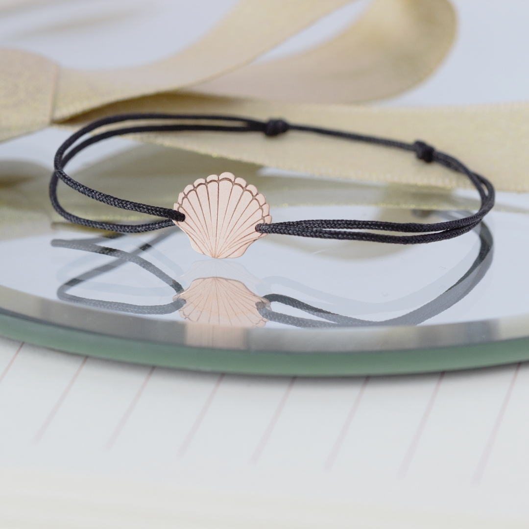 Bratara scoica din aur galben, alb sau roz de 14K – snur reglabil
