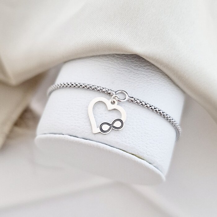 Specification: Bratara snake dama – Iubire vesnica – Charm contur inima cu infinit – Argint 925