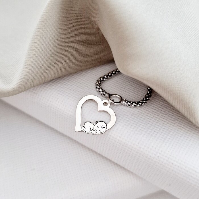Venirea pe lume a unui copil reprezinta un moment unic pentru orice mama. ? DESPRE PRODUS: Pandantul este creat din Argint 925. Dimensiunea lui este de 12 mm. Acesta este atasat de o bratara snake din Argint 925 de 15 cm cu o prelungire de 3 cm. ? Gramaj aproximativ ARGINT 925: 2.17 grame Aceasta bijuterie personalizata este realizata de la zero pentru fiecare comanda in parte.? Dupa plasarea si confirmarea comenzii incepe procesul ei de creatie: Realizare Design -> Taiere/Personalizare -> Finisare manuala -> Polish Final -> Ambalare -> Livrare! Datorita procesului de productie si a personalizarii bijuteriei dupa propria dorinta gramajul final al produsului poate fi diferit. Din acest motiv pe site este afisat gramajul obtinut prin catarirea produsului realizat in pozele de prezentare. Pretul produsului include pe langa costul gramului de Argint 925 si tot procesul de mai sus, necesar pentru realizarea unui produs cu adevarat special pentru tine. ? Toate produsele din Argint 925 comercializate de Chic Bijoux sunt marcate cu titlul Argintului? 925 ? Dupa plasarea comenzii veti fi contactat de o colega din echipa Chic Bijoux pentru toate detaliile necesare personalizarii produsului.
