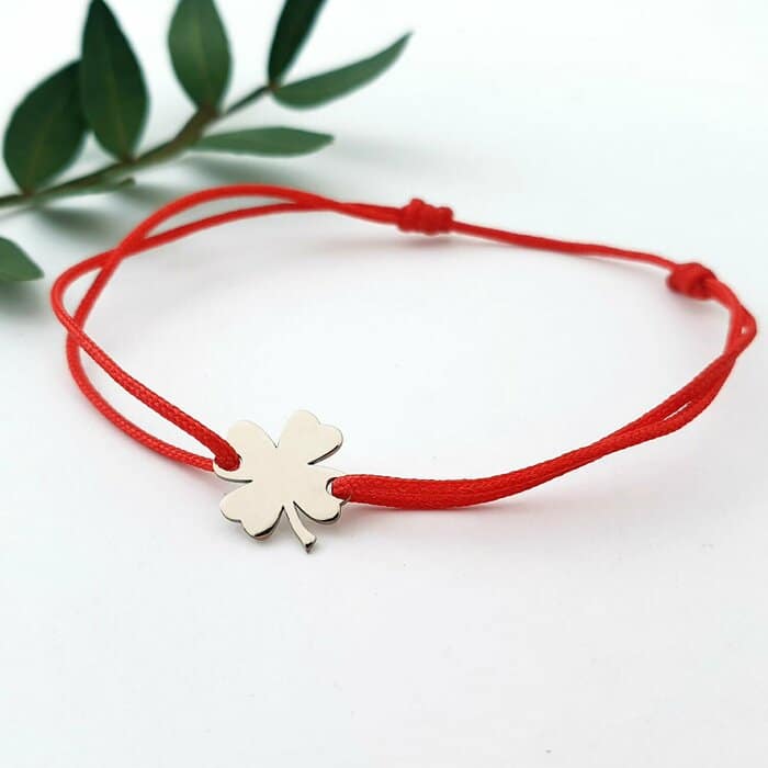 Farmecul trifoiului cu patru foi este si a fost folosit pentru a crea bijuterii cu o semnificatie aparte. Este stiut faptul ca trifoiul cu patru foi este norocos, dar stiai si ca acesta exprima cele patru binecuvantari ale vietii: noroc, speranta, credinta si iubire? Astfel o bijuterie personalizata cu simbolul trifoiului va fi o amuleta perfecta care iti va aduce noroc si te va proteja de rau. Bratara este creata din Aur Alb de 14K prin taiere si gravare laser, avand dimensiunea de 10×9 mm si fiind atasata unui snur de matase vegetala, marime reglabila. Un cadou deosebit! Gramaj aproximativ AUR 14K  (585): 0.20 grame Aceasta bijuterie personalizata este realizata de la zero pentru fiecare comanda in parte. Dupa plasarea si confirmarea comenzii incepe procesul ei de creatie: Realizare Design -> Taiere/Personalizare -> Finisare manuala -> Polish Final -> Ambalare -> Livrare! Pretul produsului include pe langa costul gramului de Aur 14K si tot procesul de mai sus, necesar pentru realizarea unui produs cu adevarat special pentru tine.   Toate produsele din Aur comercializate de Chic Bijoux sunt marcate cu titlul Aurului de 14K · 585 ·