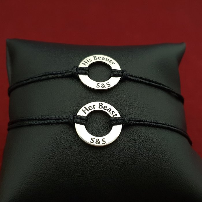 Specification: Bratari cuplu – His beauty & Her beast – Argint 925, snur negru
