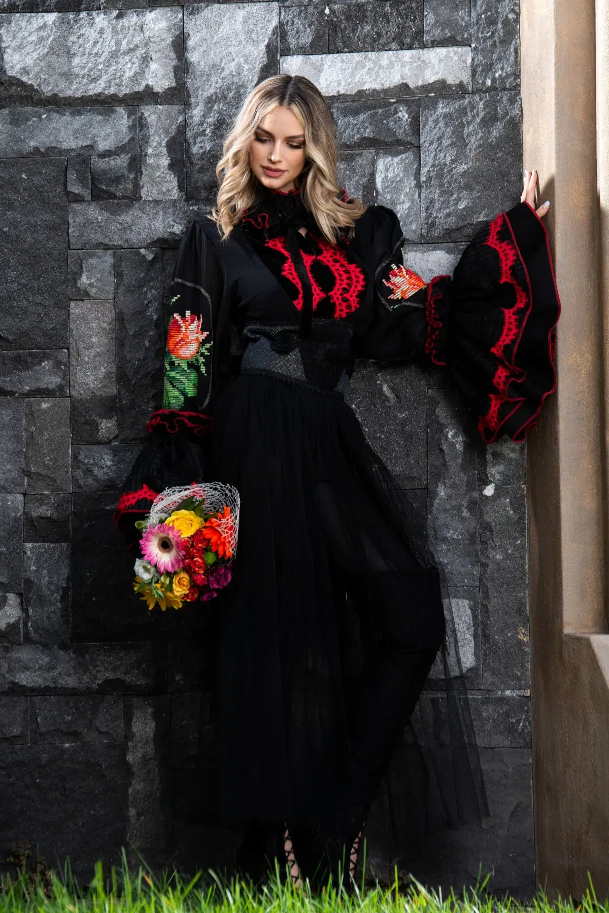 Camasa Cosanzenei impodobita cu dantela si trandafiri rosii Legendaria by Venezia CAMASA COSANZENEI de inspiratie traditionala moldoveneasca din vascoza si voal de matase impodobita cu dantela si trandafiri stilizati rosii brodati cu migala.Compozitie: 80% poliester 17% vascoza 3% elastanFabricat in Romania* Echipa noastra face toate eforturile in a prezenta cat mai bine culorile produselor prezentate pe site insa culorile pot diferi de situatia reala si pot varia în functie de setarile monitorului/dispozitivului dvs!