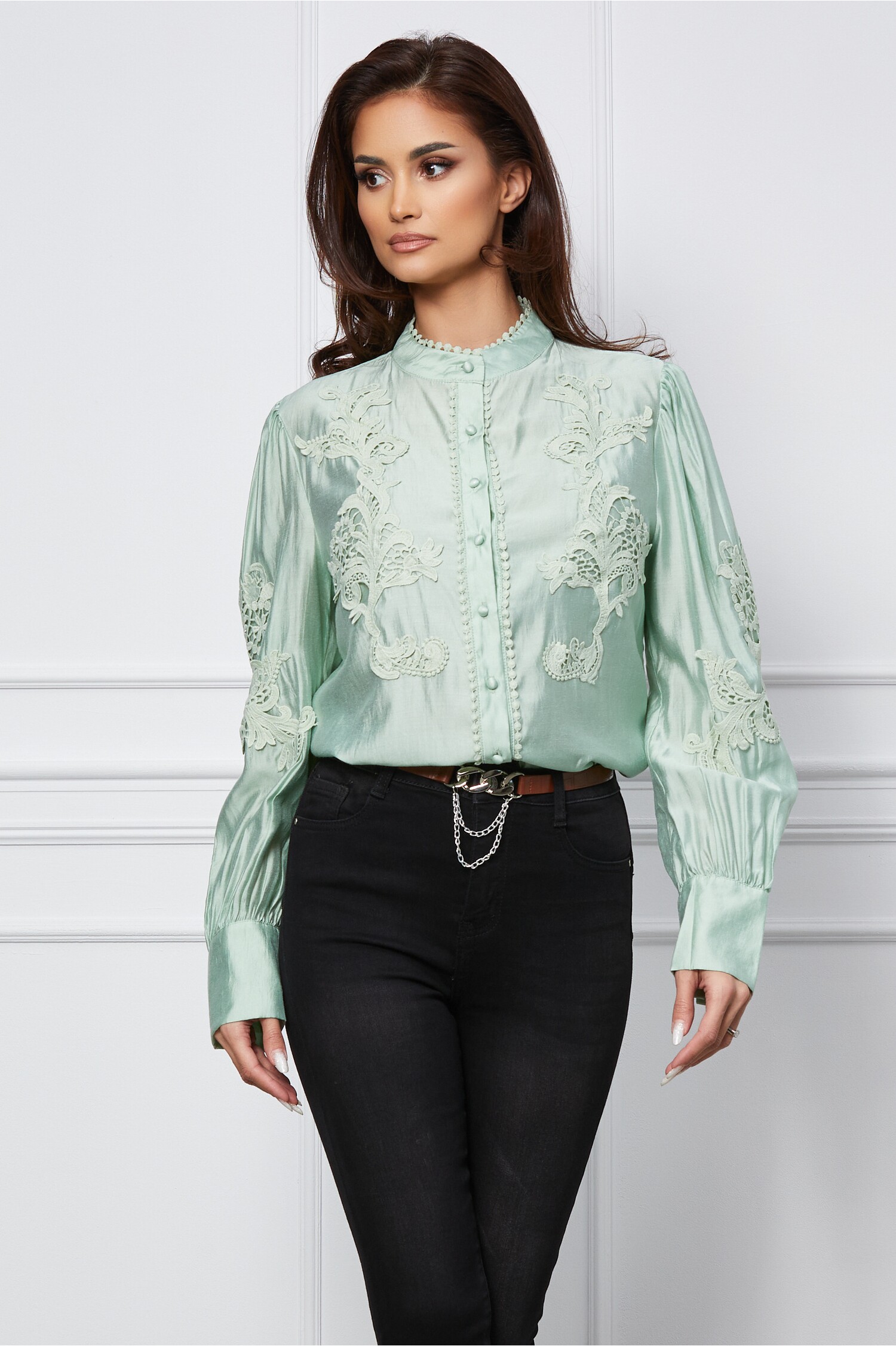 Specification: Camasa Isabela verde cu broderie pe bust si maneci