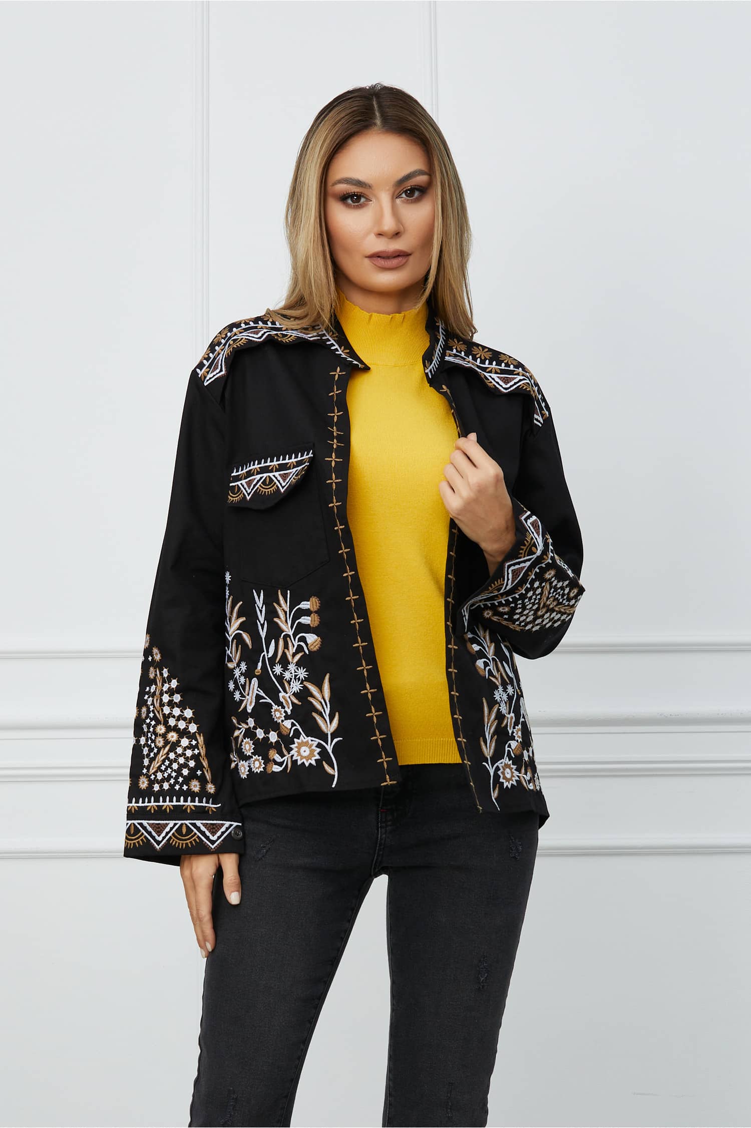 Specification: Camasa Natalia neagra cu broderie din denim subtire