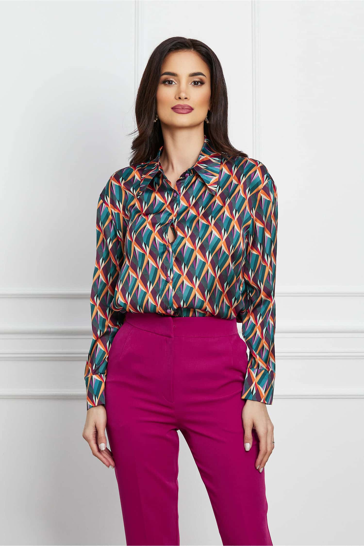 Specification: Camasa Nellie turcoaz cu imprimeuri orange