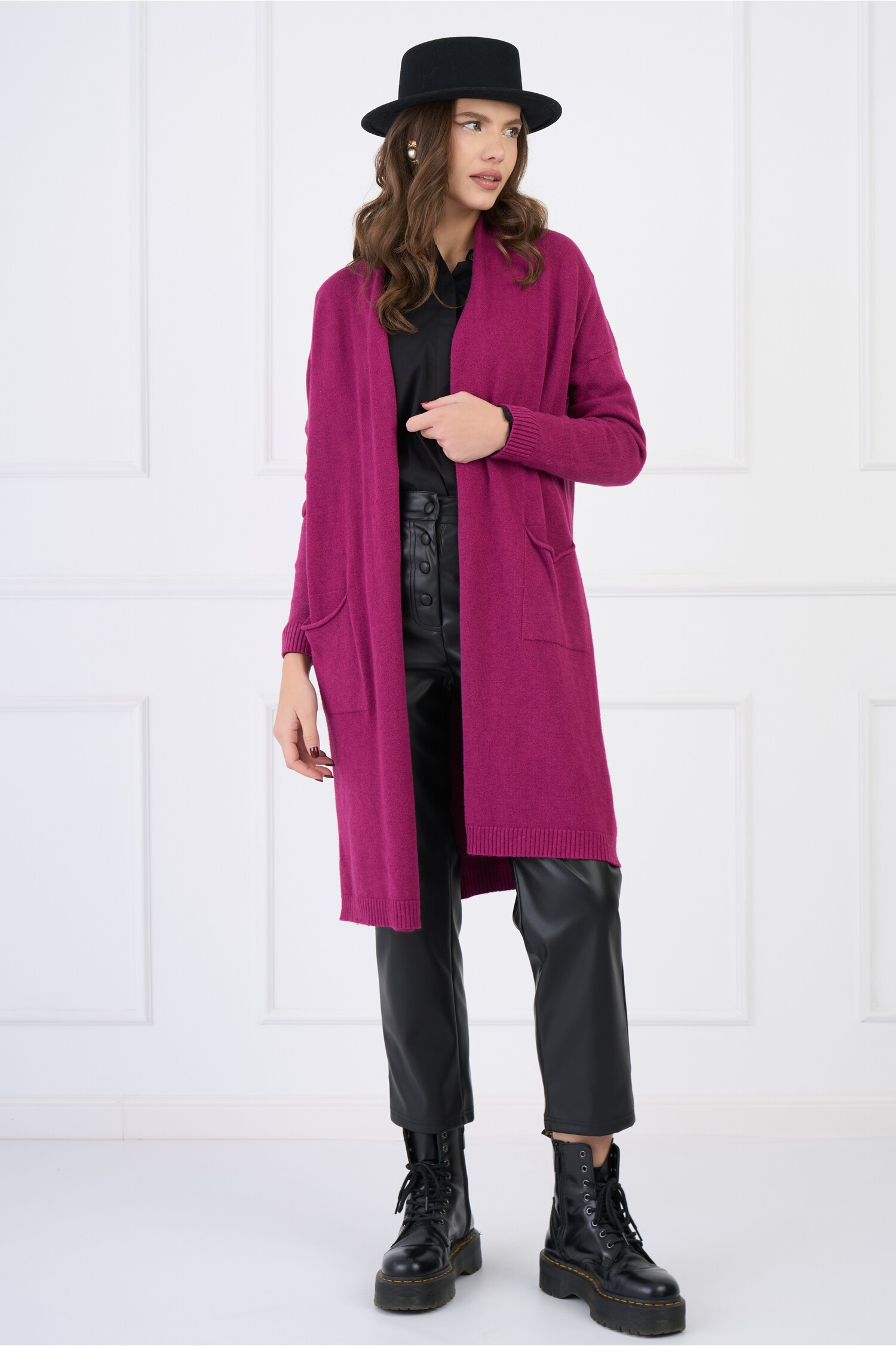 Cardigan din tricot magenta cu buzunare! La acest produs ai transport si retur/schimb gratuite! Livrare in Easy Box!