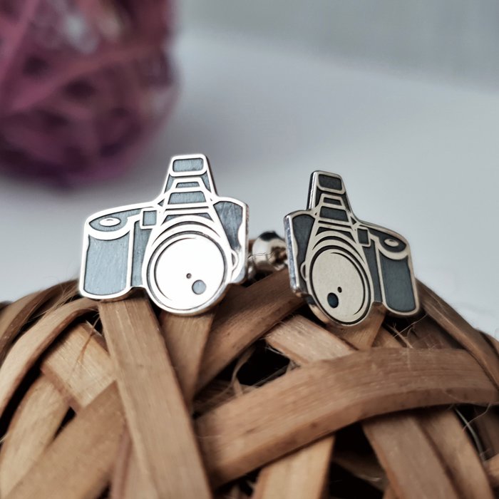 Aparatul foto e oglinda ce lasa in urma amintiri. Ofera un cadou personalizat unei persoane pasionate de fotografie sau care are aceasta profesie frumoasa. Perechea de cercei personalizata este creata din Argint 925 prin taiere si gravare laser, avand dimensiunea de 10×10 mm si sistemul de inchidere tip surub.
