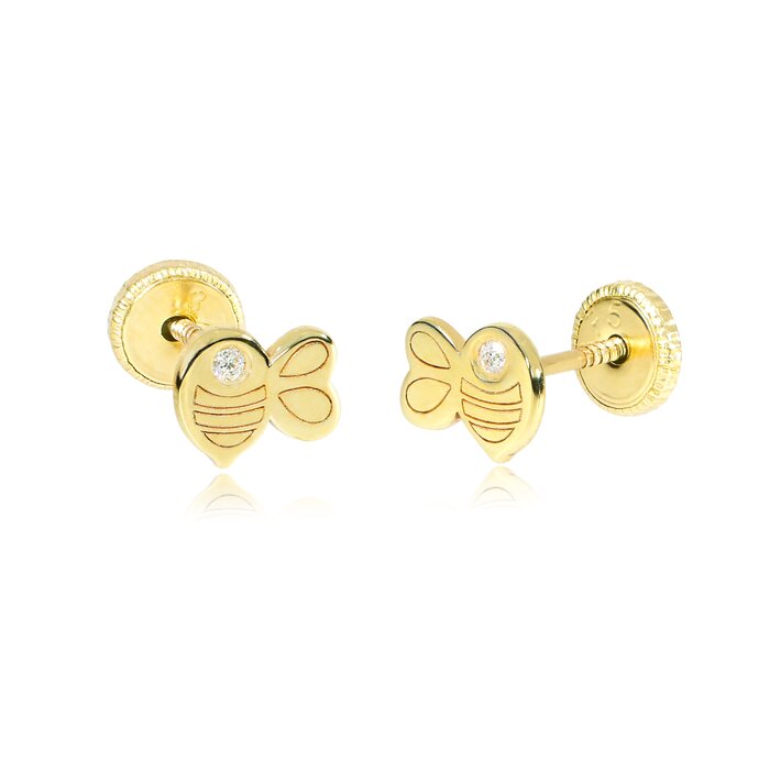 Cercei bebe/fetite cu Diamant natural alb – Model albinute – Aur Galben 9K – Inchizatoare sigura si confortabila cu filet