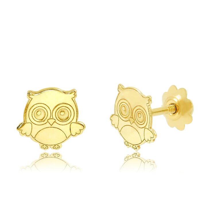 Specification: Cercei copii/bebe – Model bufnita – Aur Galben 14K – Inchizatoare sigura si confortabila cu filet