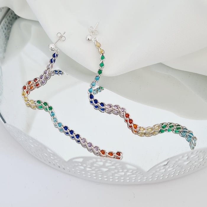 Cercei cromatici – Model lantisor lung impletit cu Zirconii multicolore – Argint 925