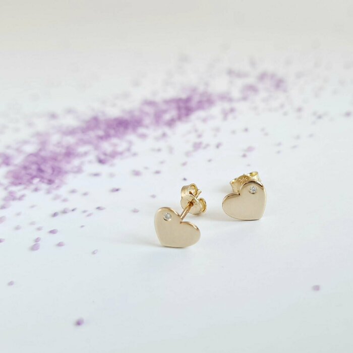 Cercei cu Diamante naturale – Inima – Aur Galben 14K – Inchizatoare surub