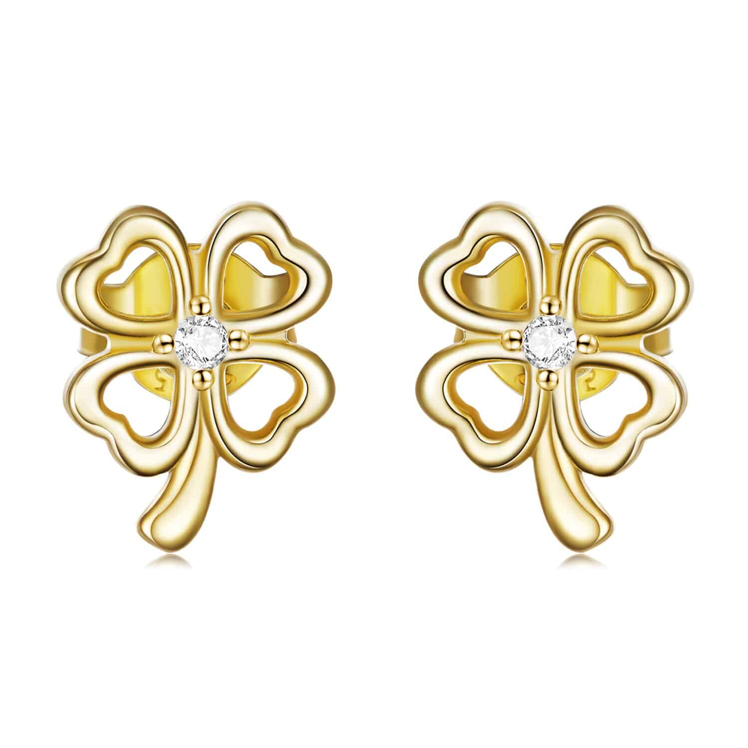 Cercei din argint Golden Four Leaf Clover