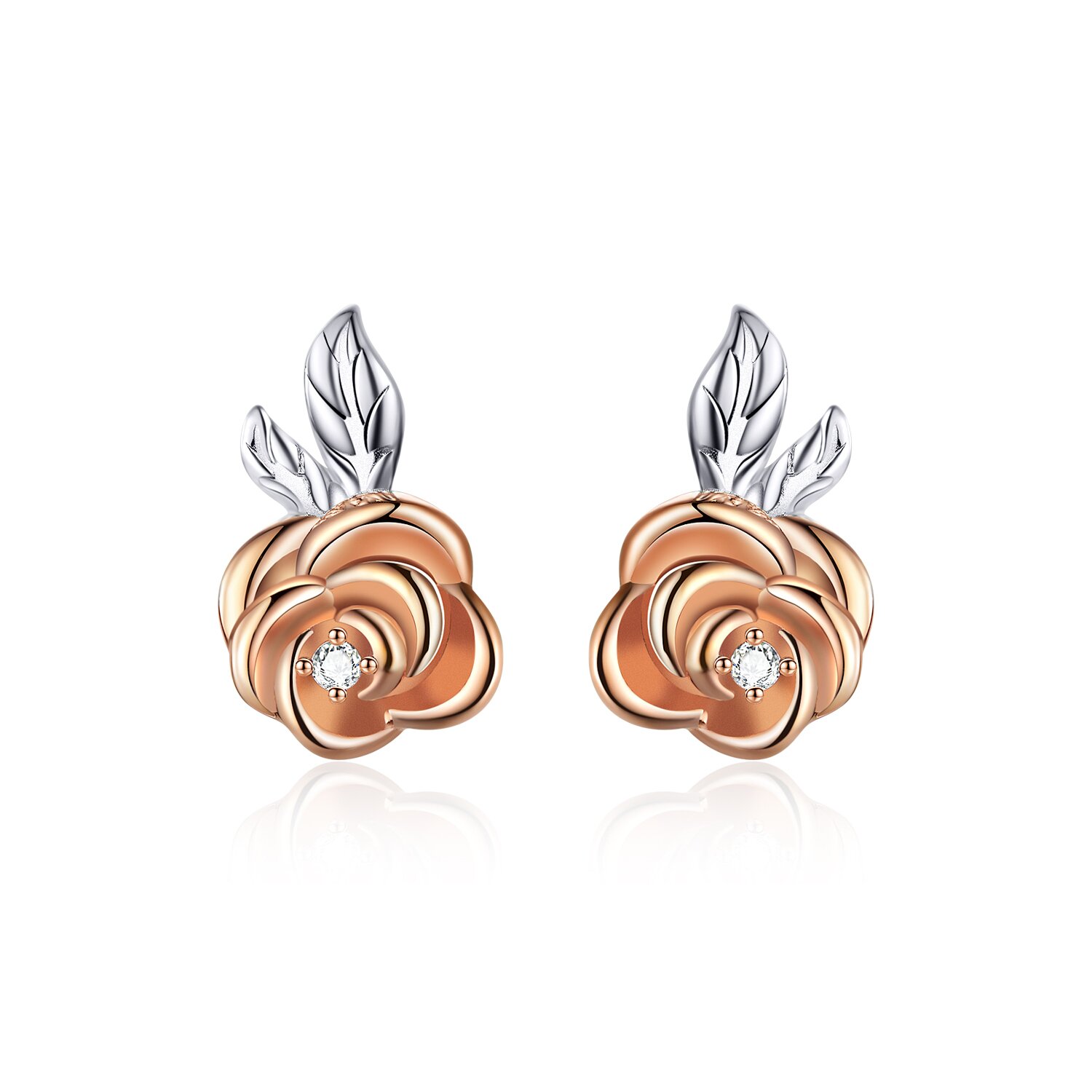 Cercei din argint Rose Gold Little Flower! Ambalaj cadou gratuit la orice bijuterie! Transport gratuit la comenzi de peste 150 Lei! Garantie 2 ani!