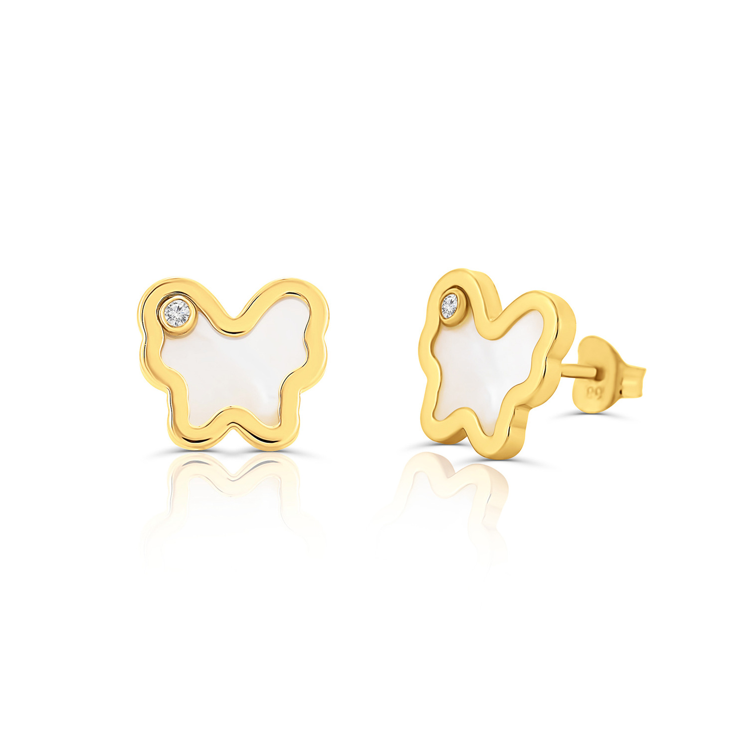 Cercei din aur 14k pentru copii, Fluturas Sidef si Cristal! Ambalaj cadou gratuit la orice bijuterie! Transport gratuit la comenzi de peste 150 Lei! Garantie 2 ani!