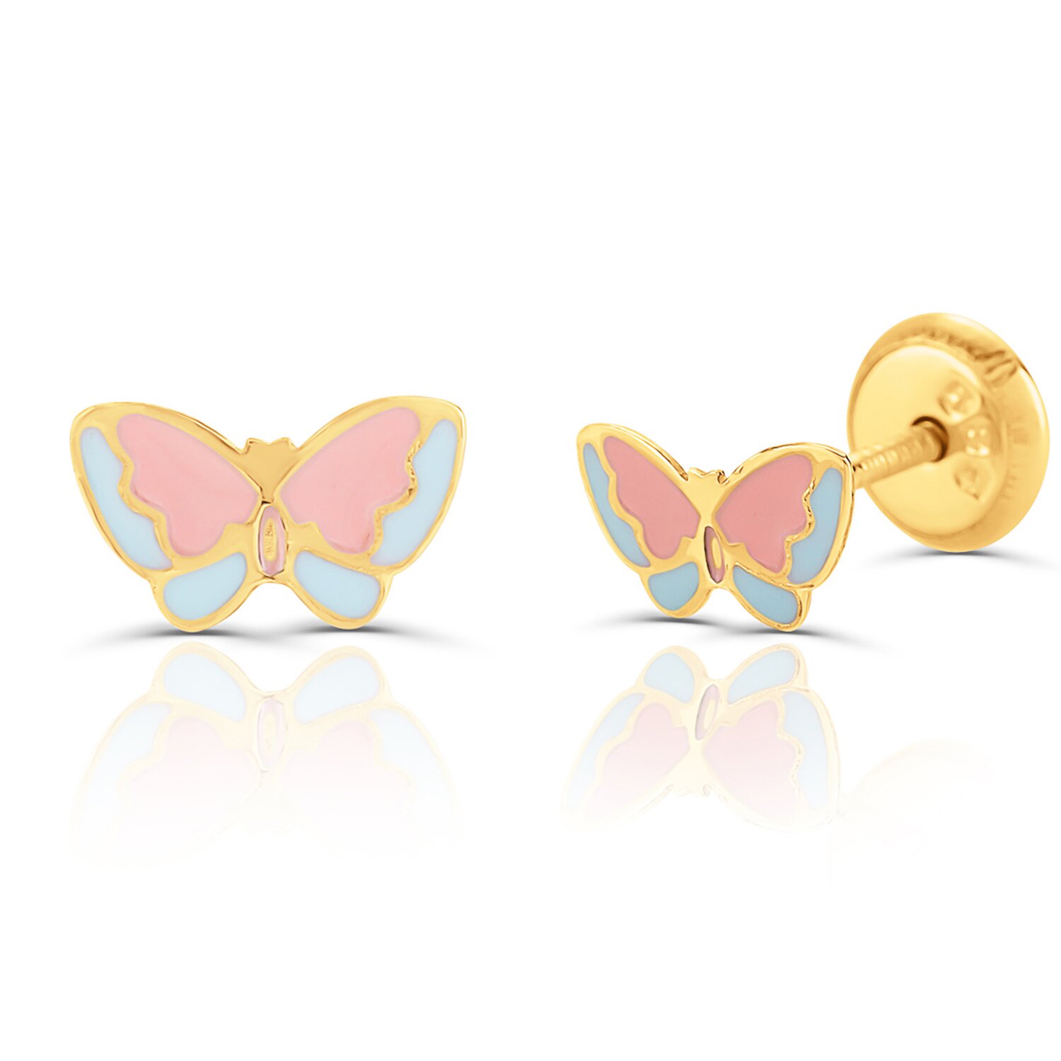 Cercei din aur 14K pentru copii Fluturasi Roz/ Bleu