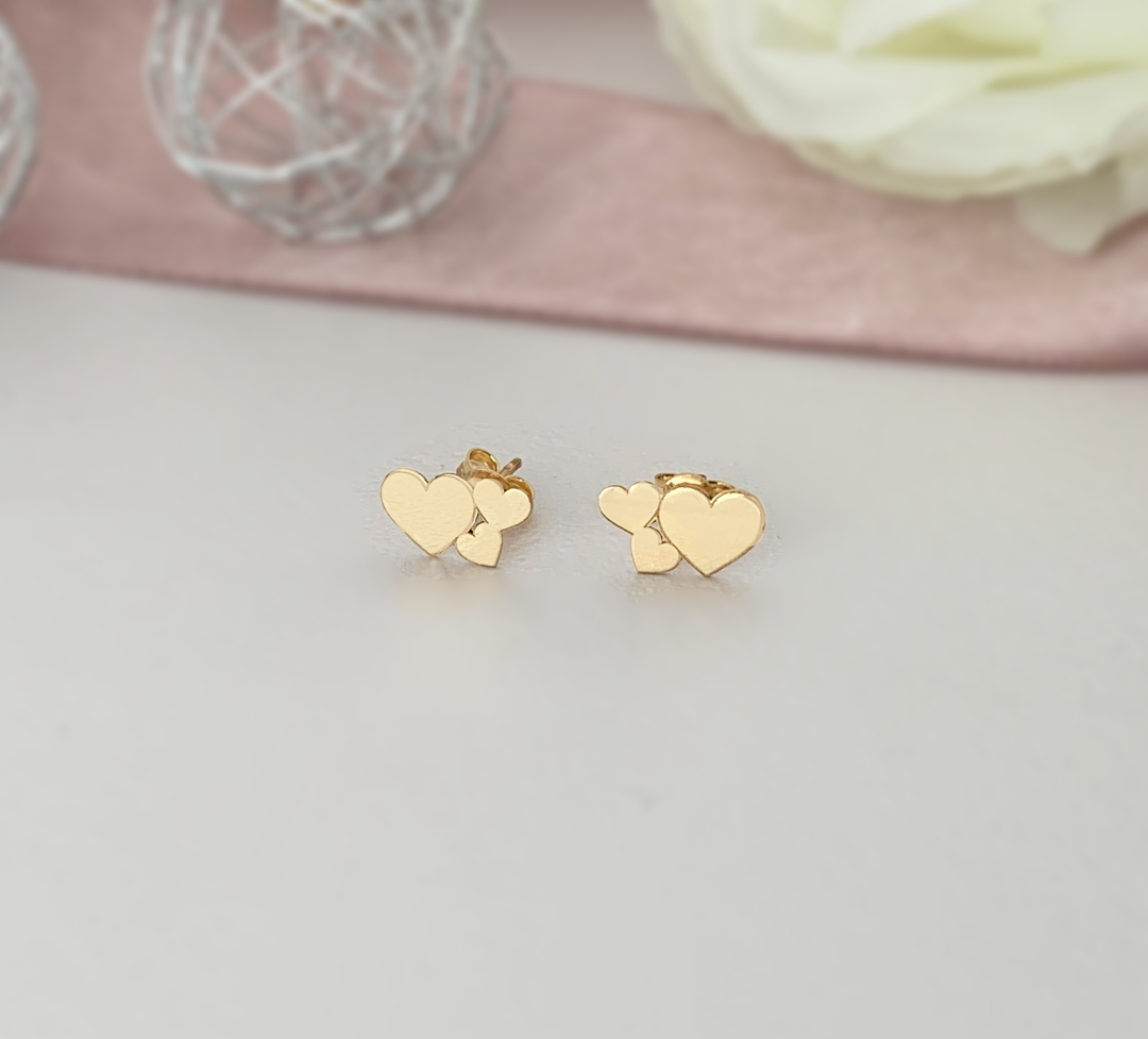 Cercei din aur galben 14k model trei inimioare – pentru dama