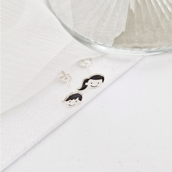 Cercei Familie – fata cu 1 codita si baiat – Argint 925 – inchidere surub