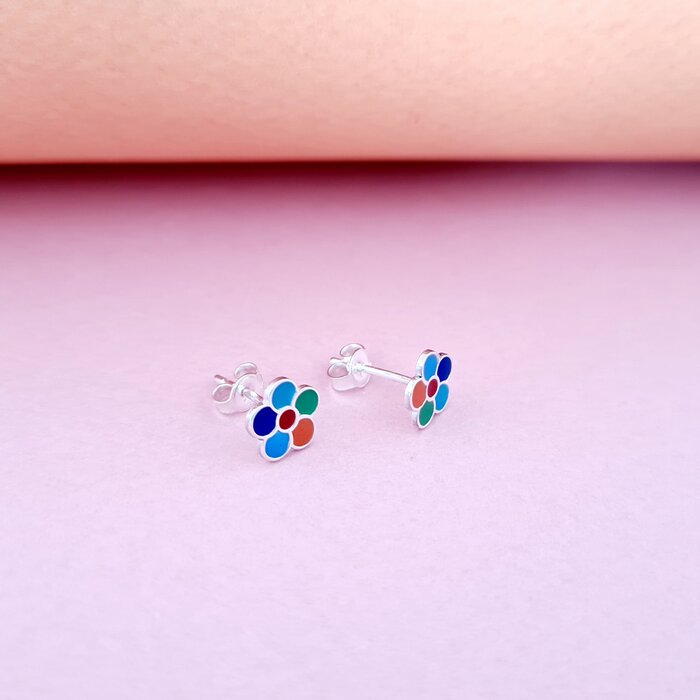 Cercei Floare multicolora – Decorati cu email – Argint 925 – Inchidere surub