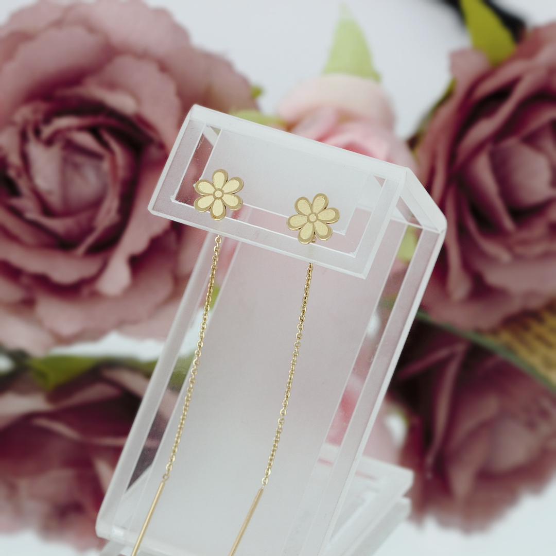 Cercei floricica – cu lant – din aur galben, alb sau roz de 14k! Ambalaj PREMIUM! Certificat de autenticitate! CADOU la comenzi peste 299lei! Transport gratuit* in toata tara!