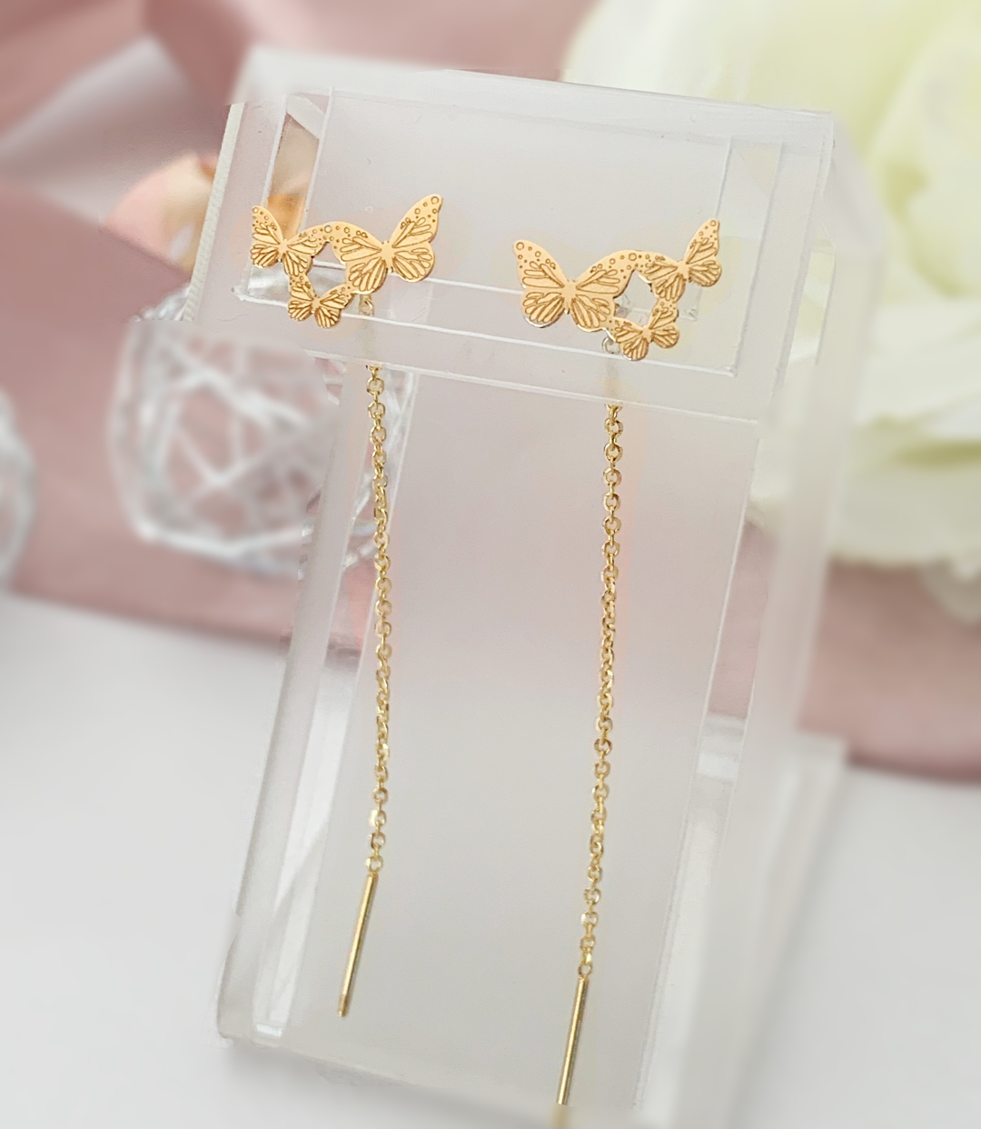 Cercei lungi cu lan? model trei fluturasi – aur galben 14K! Ambalaj PREMIUM! Certificat de autenticitate! CADOU la comenzi peste 299lei! Transport gratuit* in toata tara!