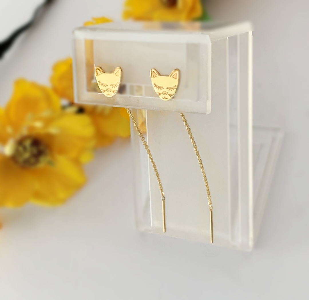 Cercei lungi cu lanț model pisicuta – aur galben 14K
