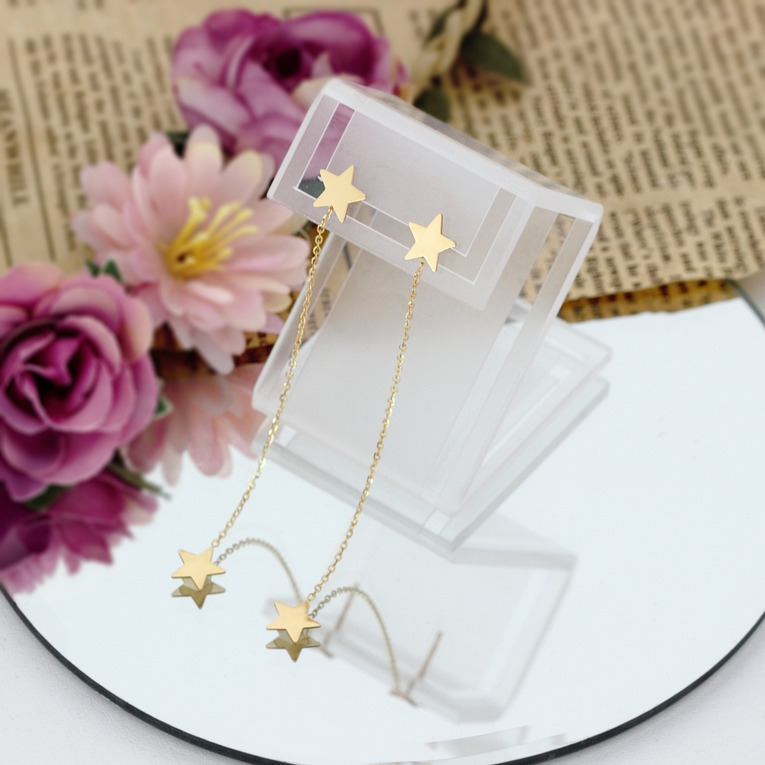 Specification: Cercei lungi din aur 14K cu stelute si lant detasabil