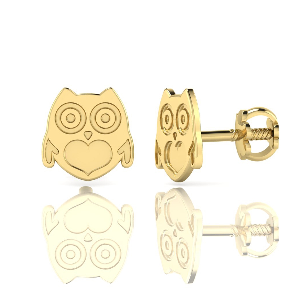 Specification: Cercei pentru bebe si fetite din aur de 14k model bufnita