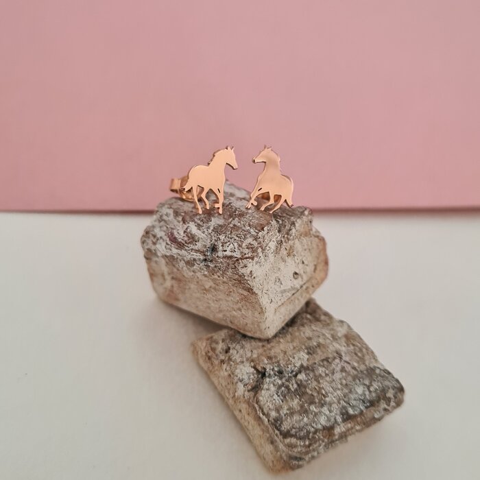 Cercei personalizati – Galop de cal – Argint 925 placat cu Aur Roz 18K – Inchidere cu surub