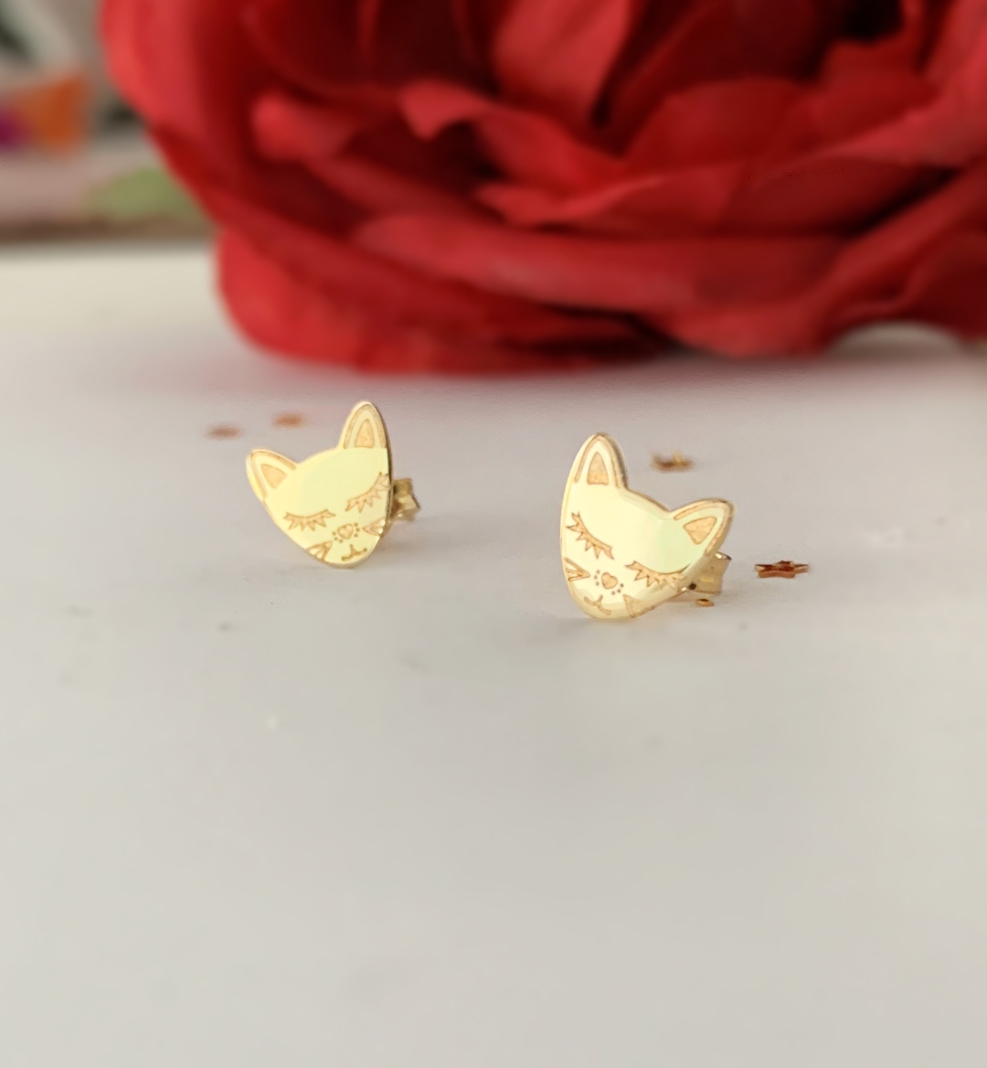 Cerceii cu pisicuta din aur galben 14k pentru dama
