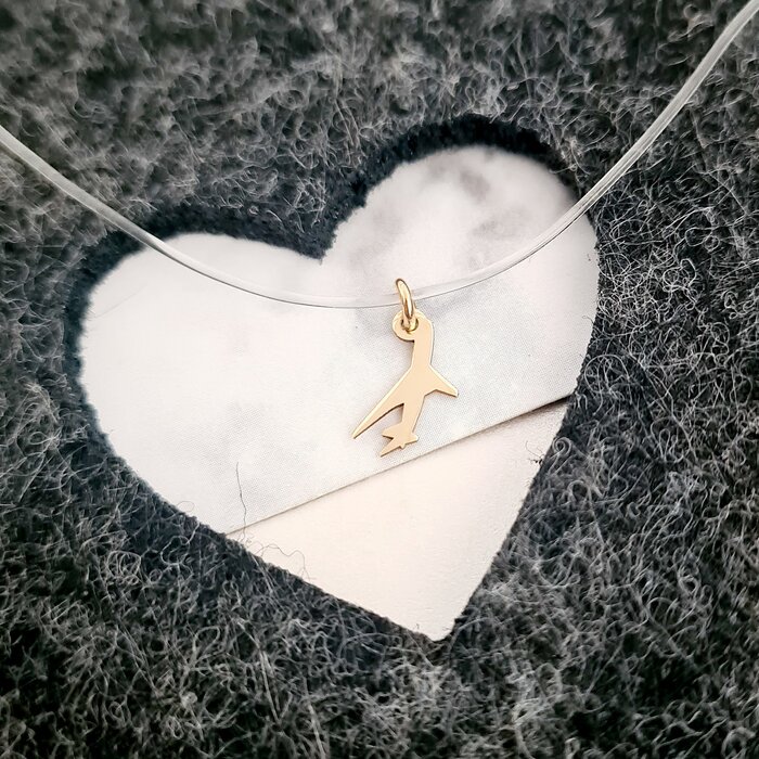 Choker Aur Galben 14K – Pandantiv Avion – Lant silicon cu inchizatoare carabina
