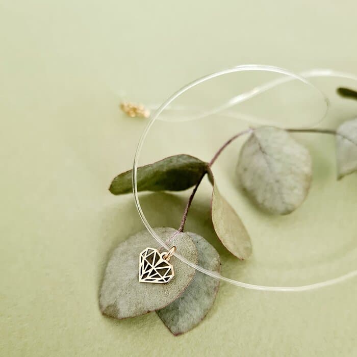 Choker Aur Galben 14K – Pandantiv Diamant – Lant silicon cu inchizatoare carabina