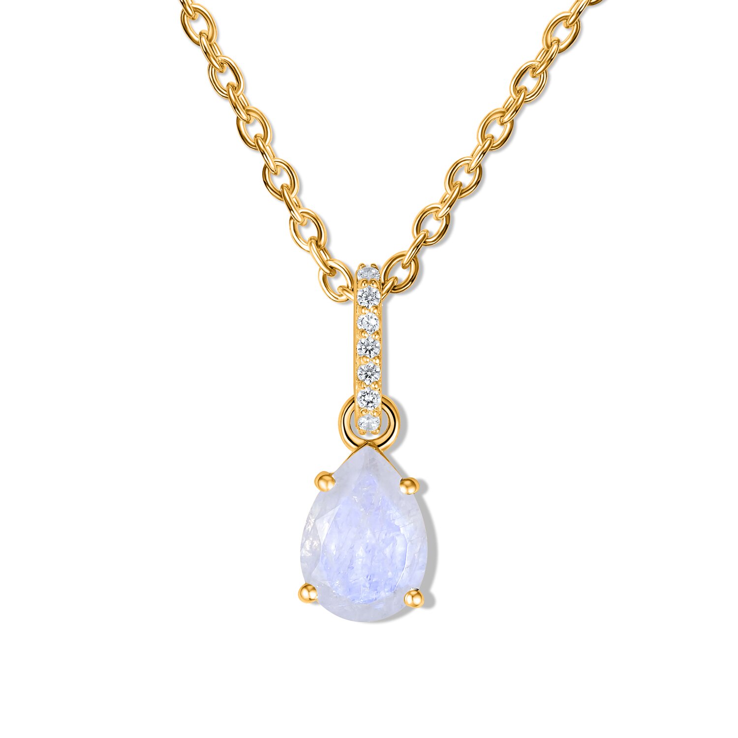 Material: Argint 925 Placaj: Vermeil 1 micron 18K Dimensiune element central: 20 x 7,3 mm Lungime lant: 45 cm Piatra: Piatra Lunii naturala Piatra Lunii este specifica zodiilor Gemeni si Rac.