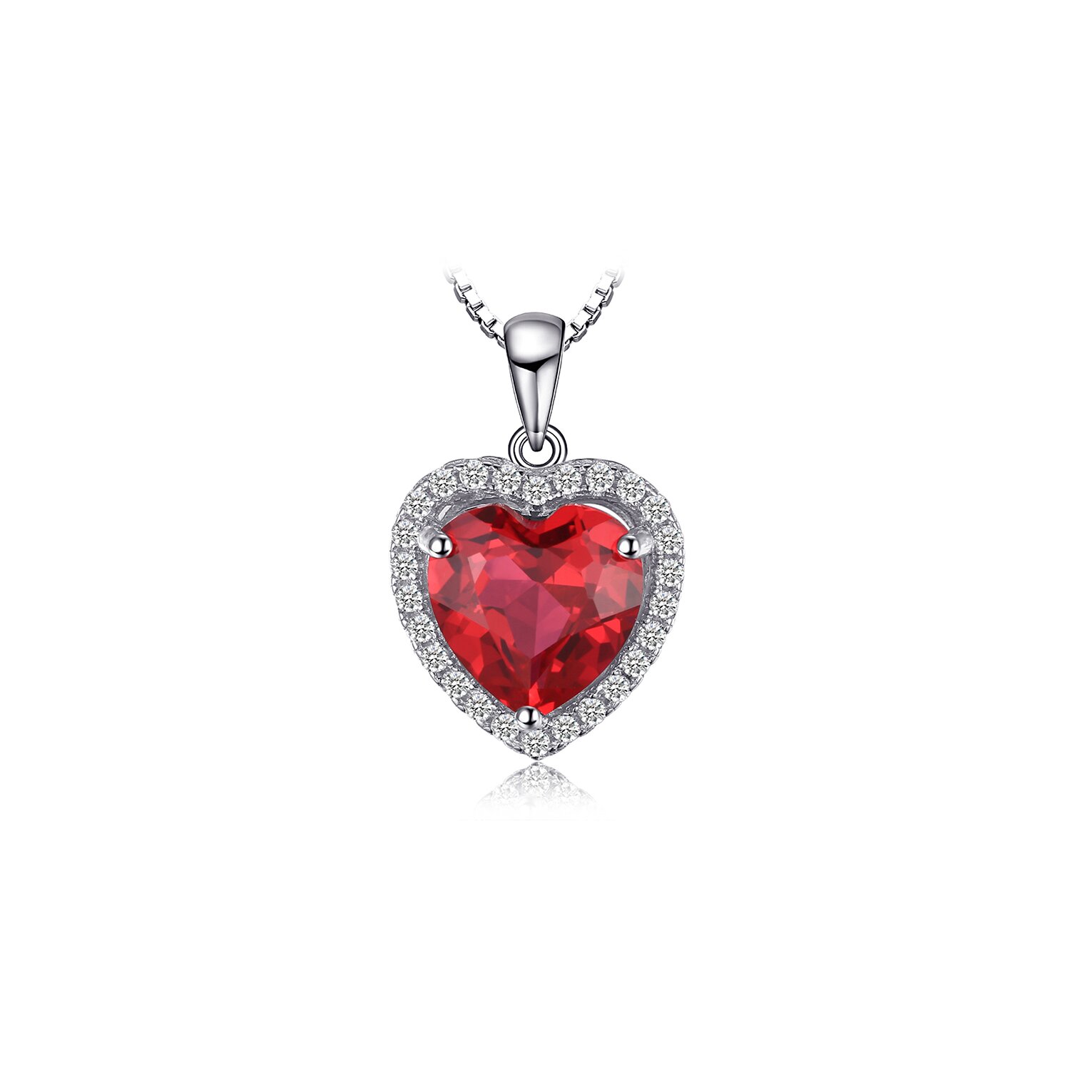 Material: Argint 925 decorat cu cristale zirconia Lungime lantisor: ajustabila, 45 cm Piatra: Rubin creat in laborator Dimensiuni pandant: 2 x 2 cm Dimensiuni piatra: 0.9 x 0.9 cm Greutate: 2.1 g