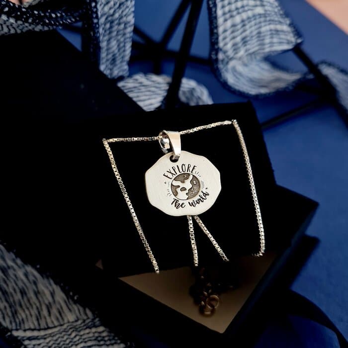 Colier personalizat Travel – Pandantiv aspect mat – Argint 925
