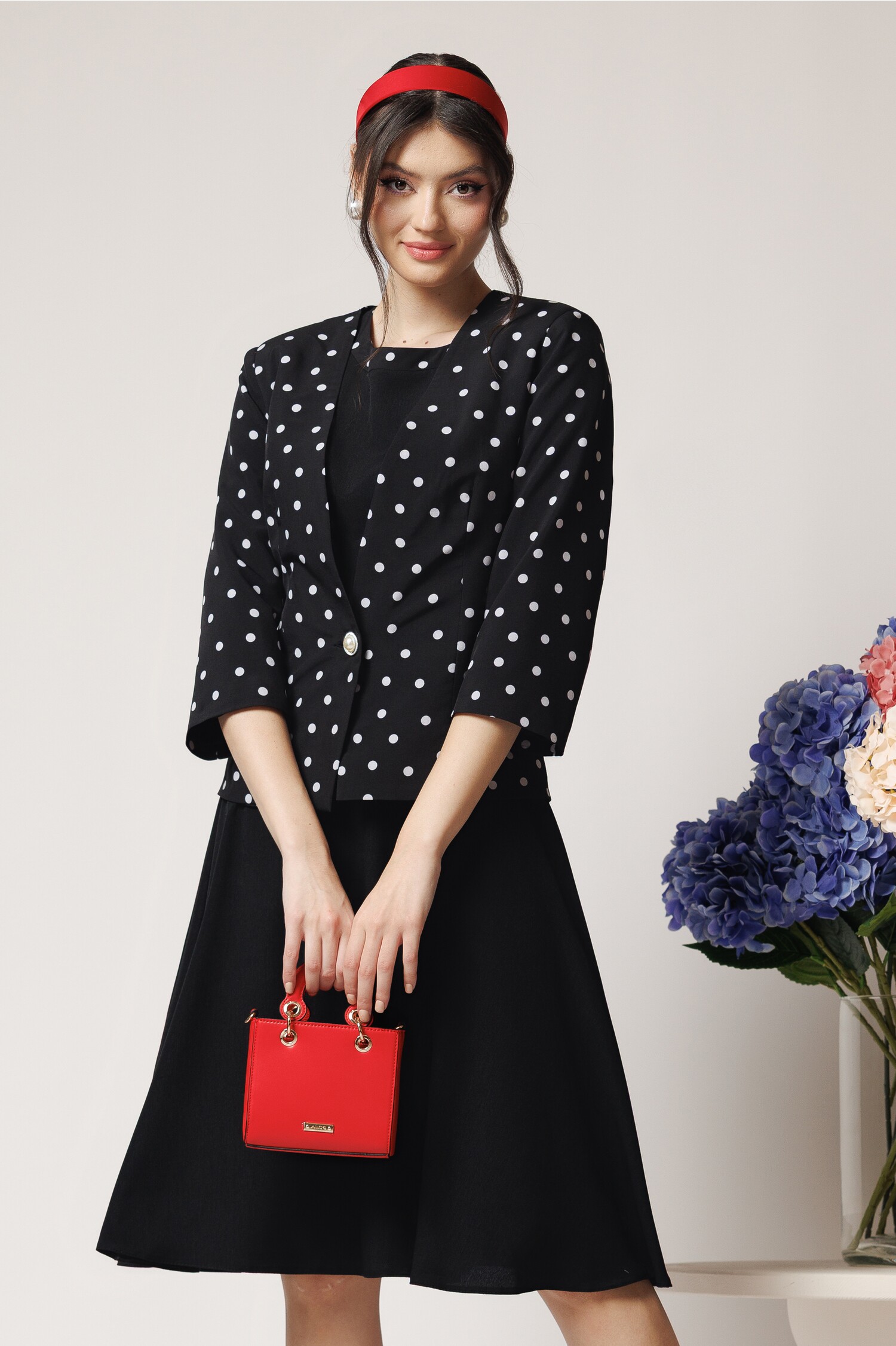 Specification: Compleu office din stofa negru cu buline pe sacou