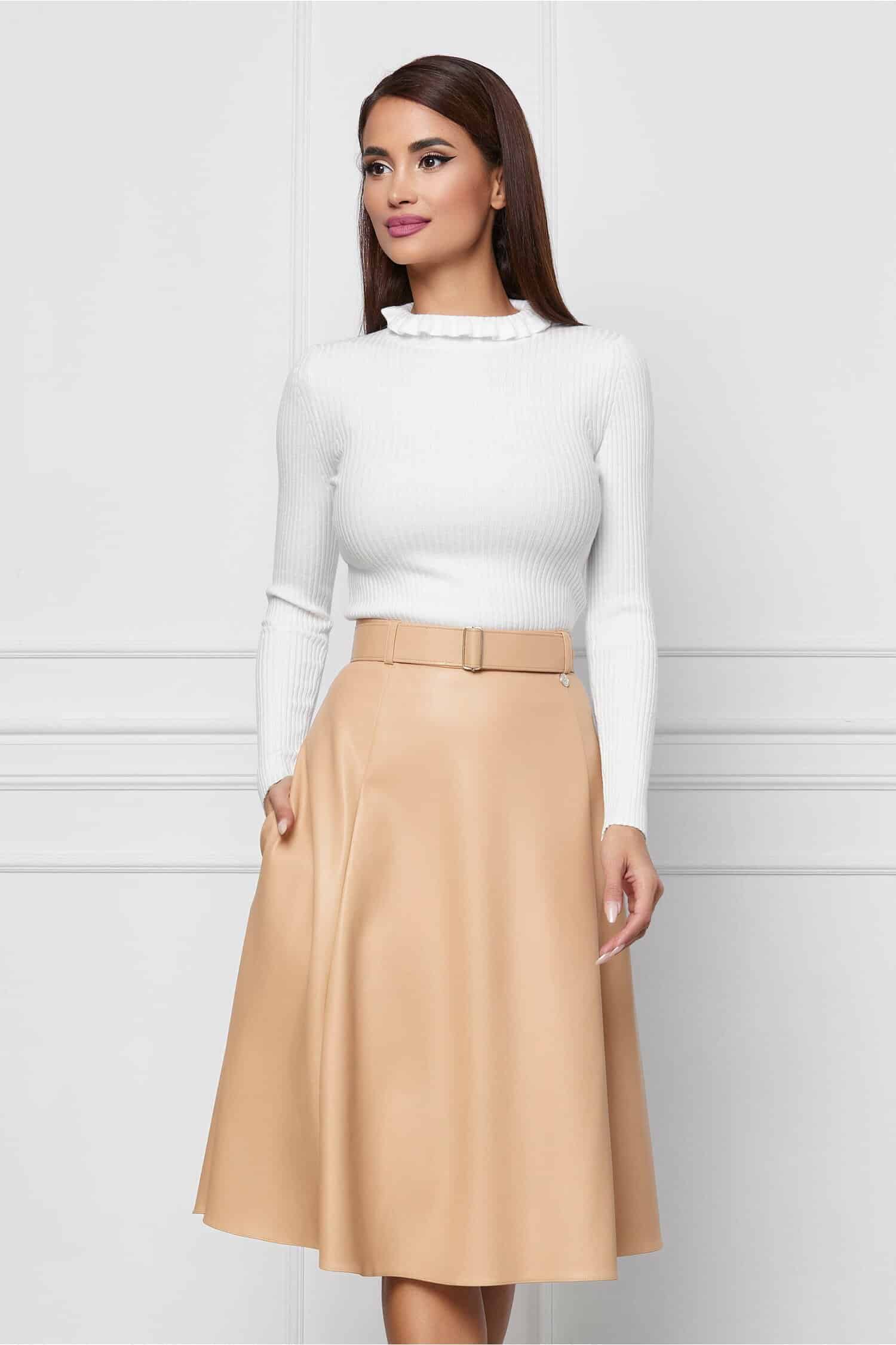 Fusta Dy Fashion bej din piele ecologica cu buzunare si curea