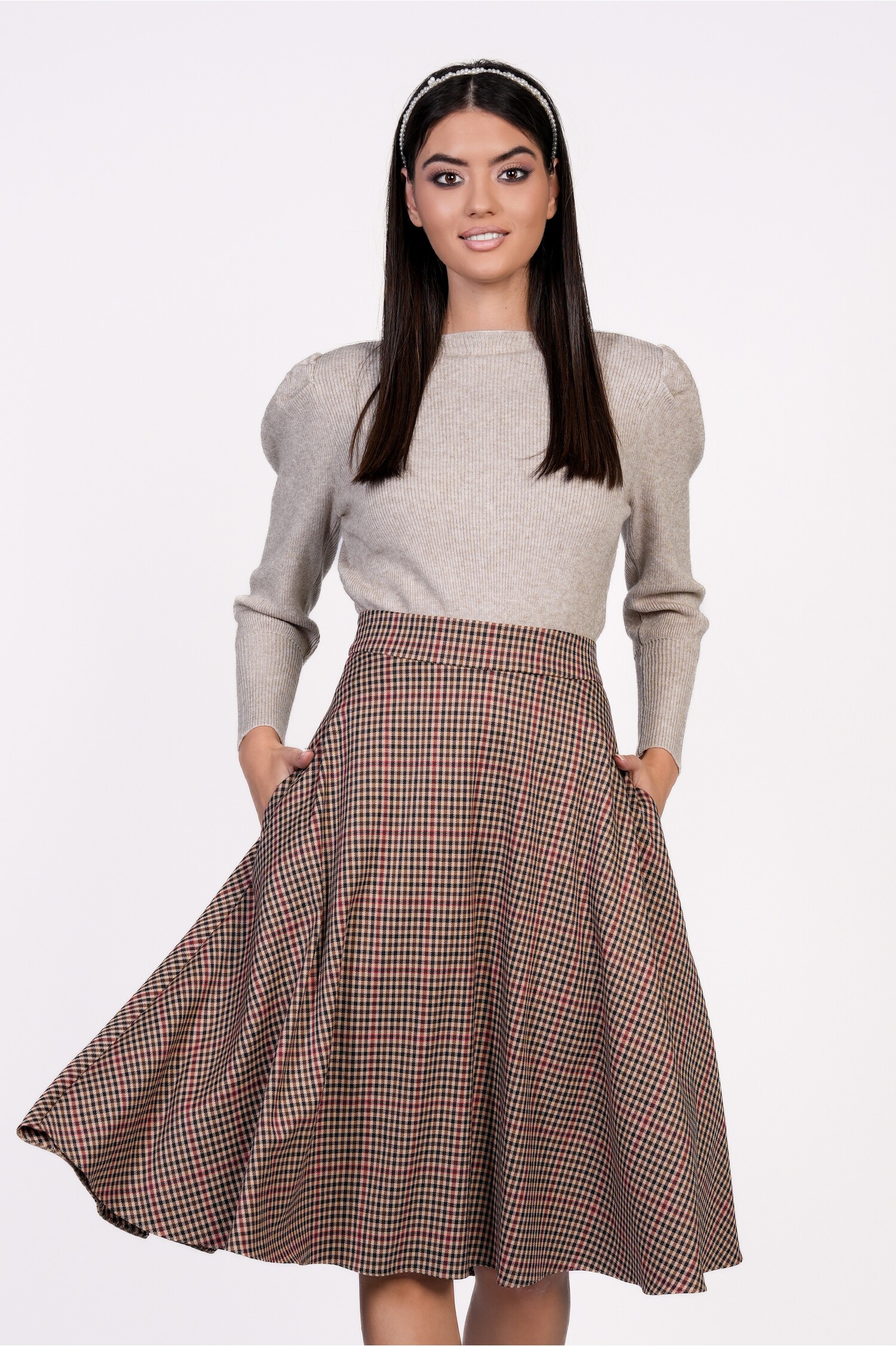 Fusta Dy Fashion clos maro cu carouri