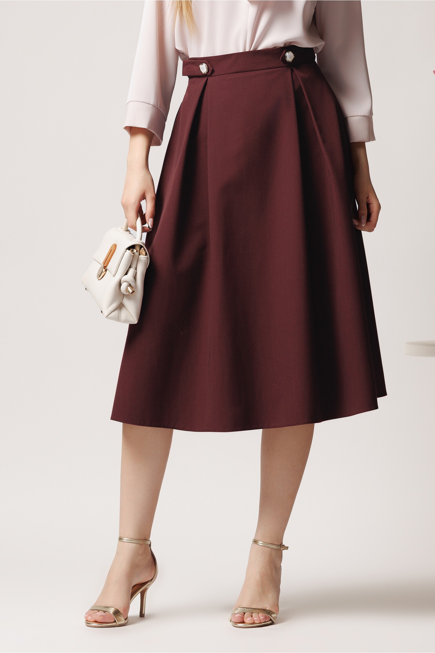 Fusta DY Fashion midi office din stofa bordo cu nasturi pe talie