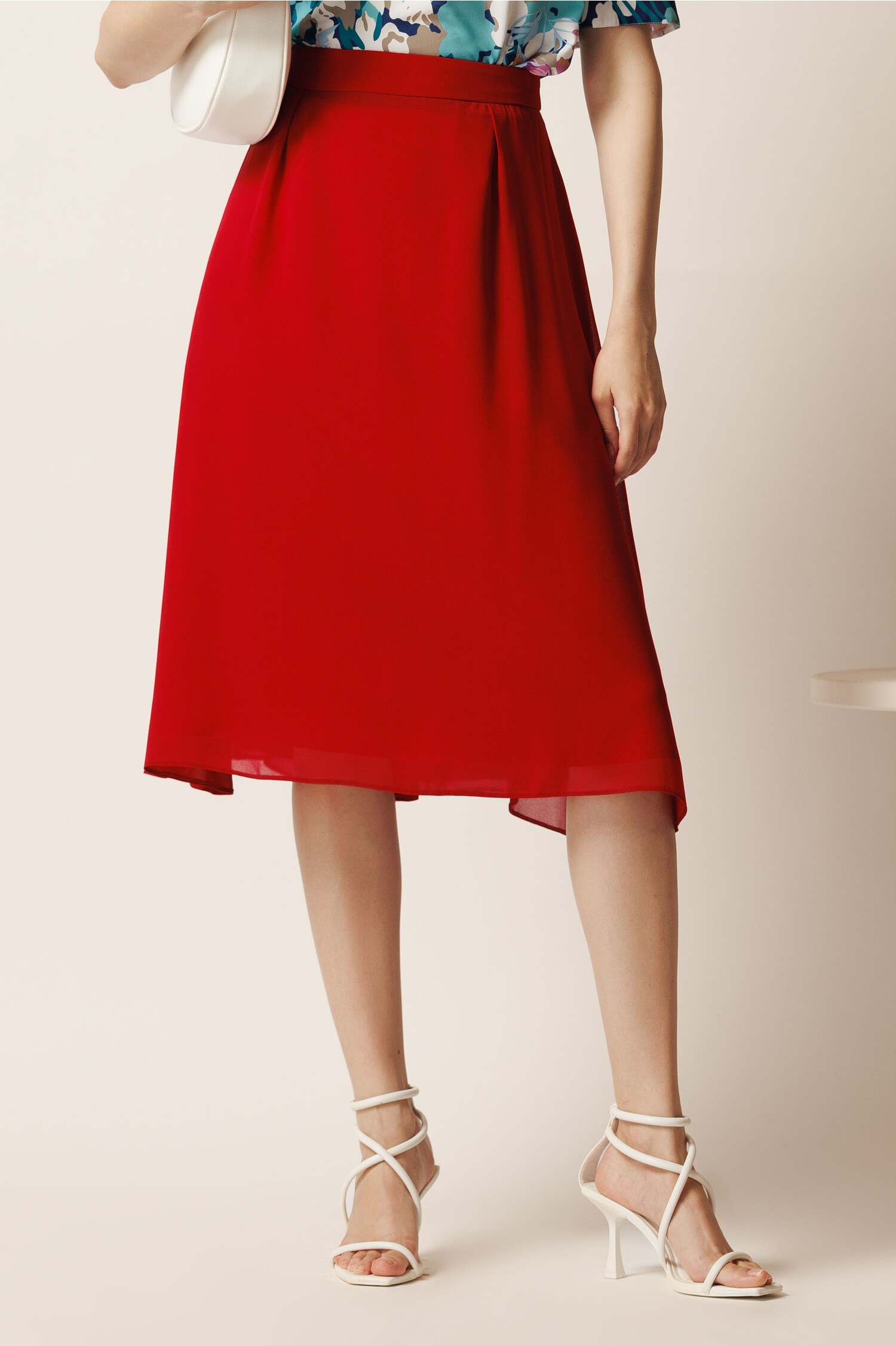 Fusta midi rosie din voal in clos