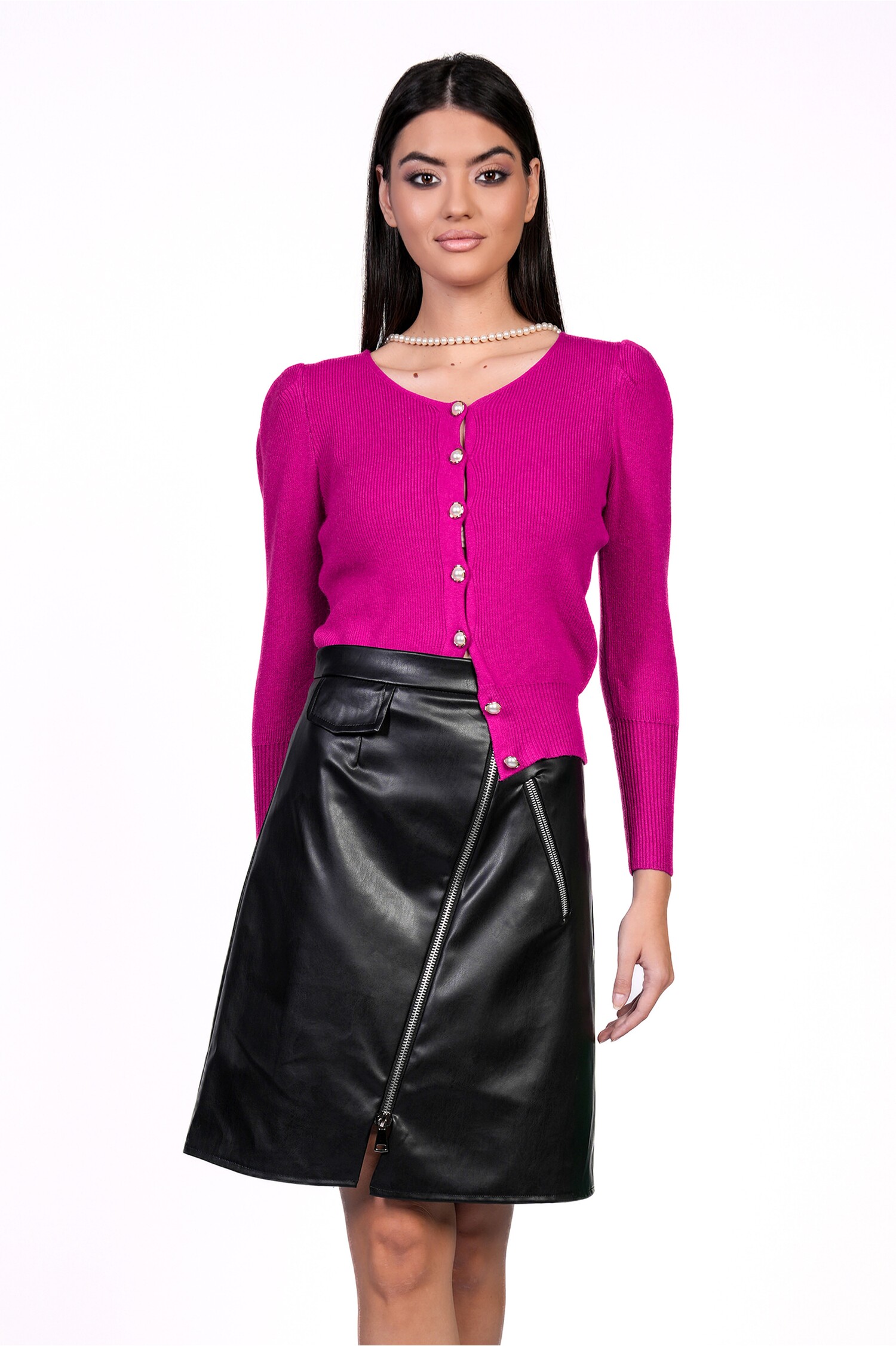 Fusta din piele ecologica cu fermoare. Are talie inalta, croi cambrat si se inchide cu fermoar la spate. Fusta din piele ecologica Talie inalta Croi cambrat Captusita pe interior Se inchide cu fermoar la spate Material: Piele ecologica Compozitie: 100% Poliester Instructiuni de intretinere: *Va rugam verificati eticheta produsului inainte de curatare! *Modelul are inaltimea de 174 cm. *Va rugam sa retineti ca o usoara discrepanta de culoare ar trebui sa fie acceptabila datorita luminii si luminozitatii ecranului. *Va rugam verificati ghidul de marimi, in cm, pentru a alege corect marimea.