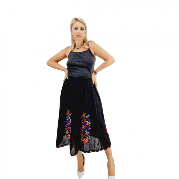 Fusta traditionala Anabela 3 Fusta neagra cu Broderie tematica traditionala