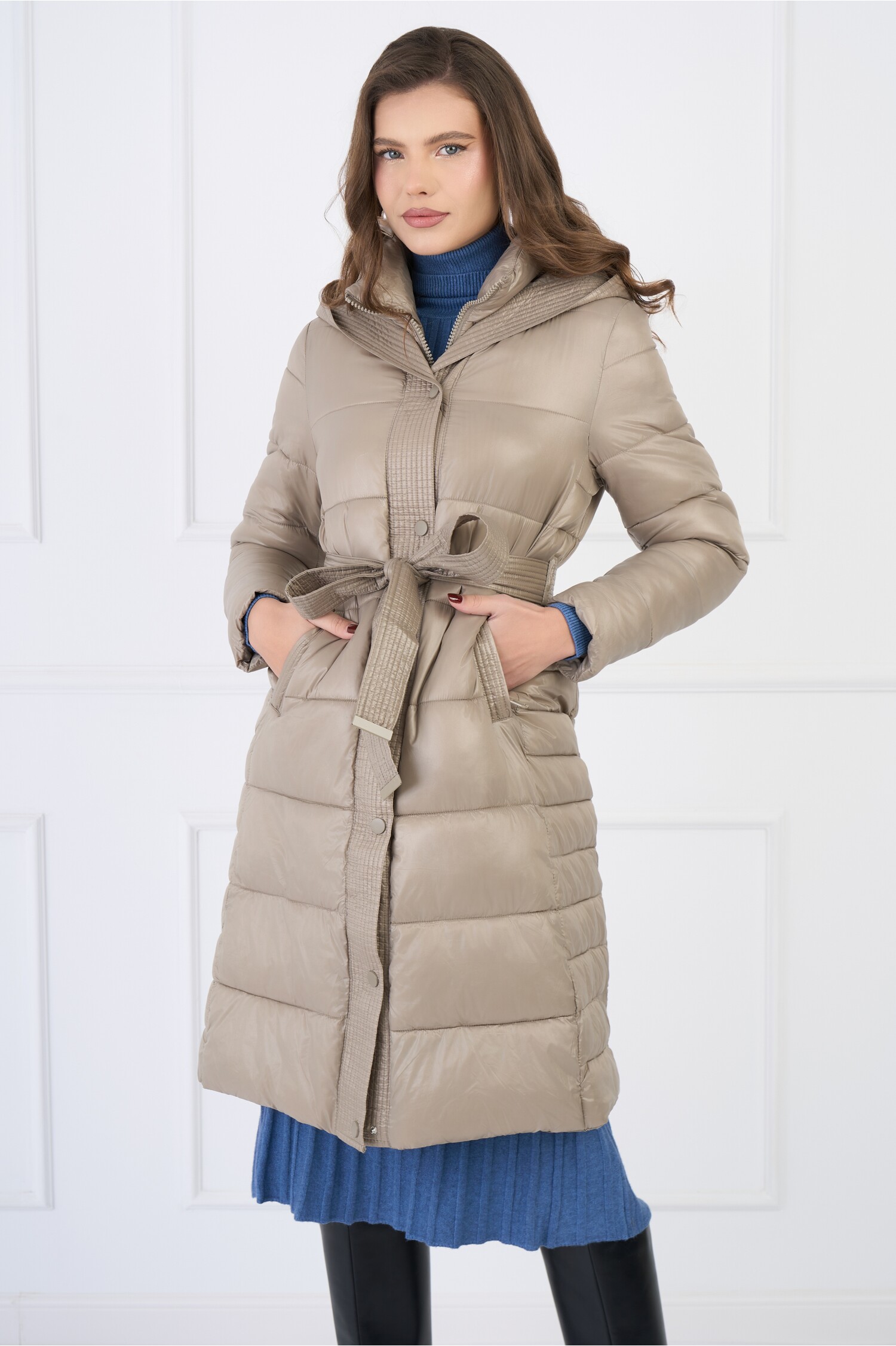 Geaca lunga matlasata cu cordon detasabil in talie. Are guler inalt, gluga nedetasabila, maneci lungi, croi drept, buzunare functionale si se inchide cu capse si femoar ascuns. Geaca lunga Gluga fixa Guler inalt Maneci lungi Croi drept Cordon in talie Buzunare functionale Inchidere cu capse si fermoar Material: Fas Compozitie: 100% Poliester *Va rugam verificati eticheta produsului inainte de curatare! *Pozitia tiparului imprimeului poate fi diferita datorita taierii. *Va rugam sa retineti ca o usoara discrepanta de culoare ar trebui sa fie acceptabila datorita luminii si luminozitatii ecranului. ? *Va rugam verificati ghidul de marimi, in cm, pentru a alege corect marimea.