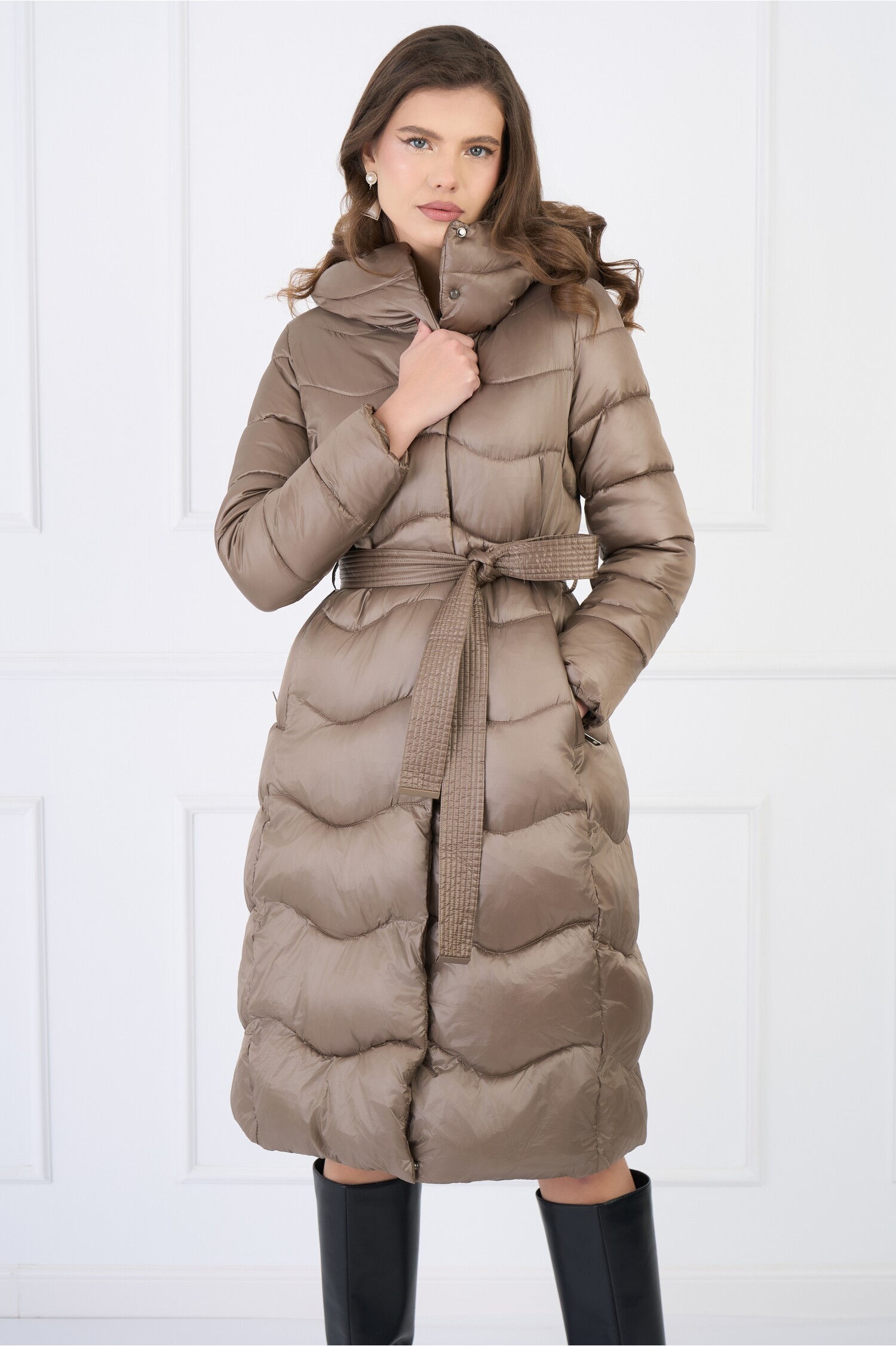Geaca din fas maro cu cordon in talie! La acest produs ai transport si retur/schimb gratuite! Livrare in Easy Box!