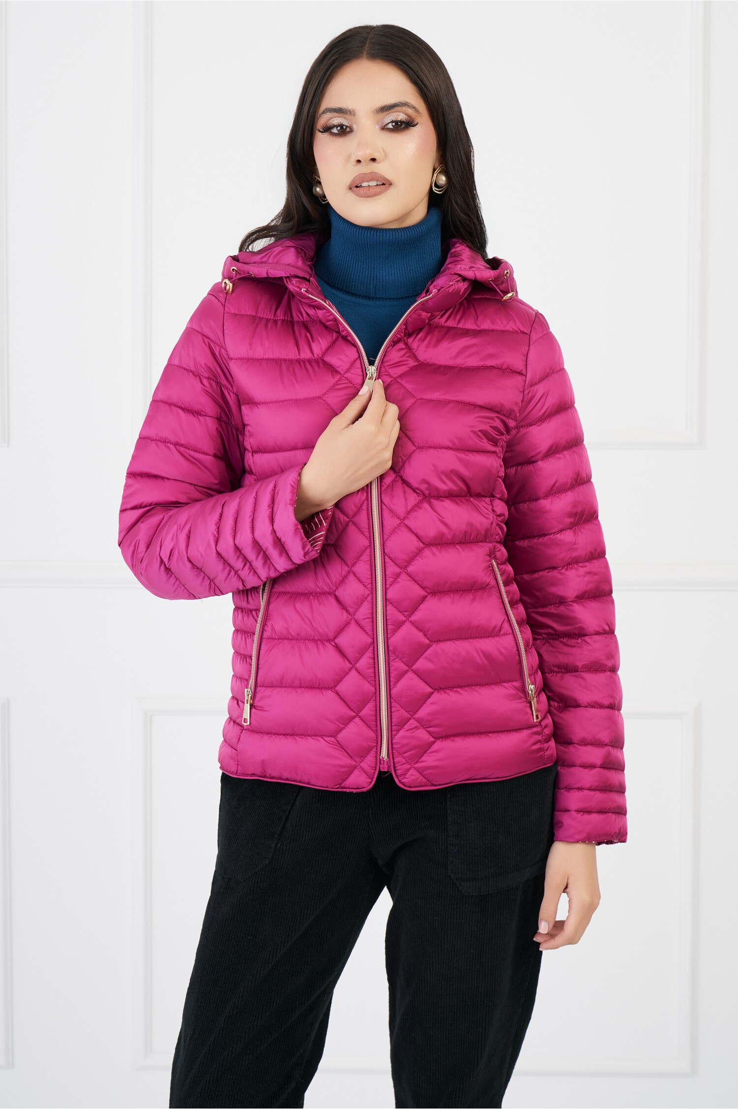 Geaca Elis fucsia matlasata cu gluga! La acest produs ai transport si retur/schimb gratuite! Livrare in Easy Box!