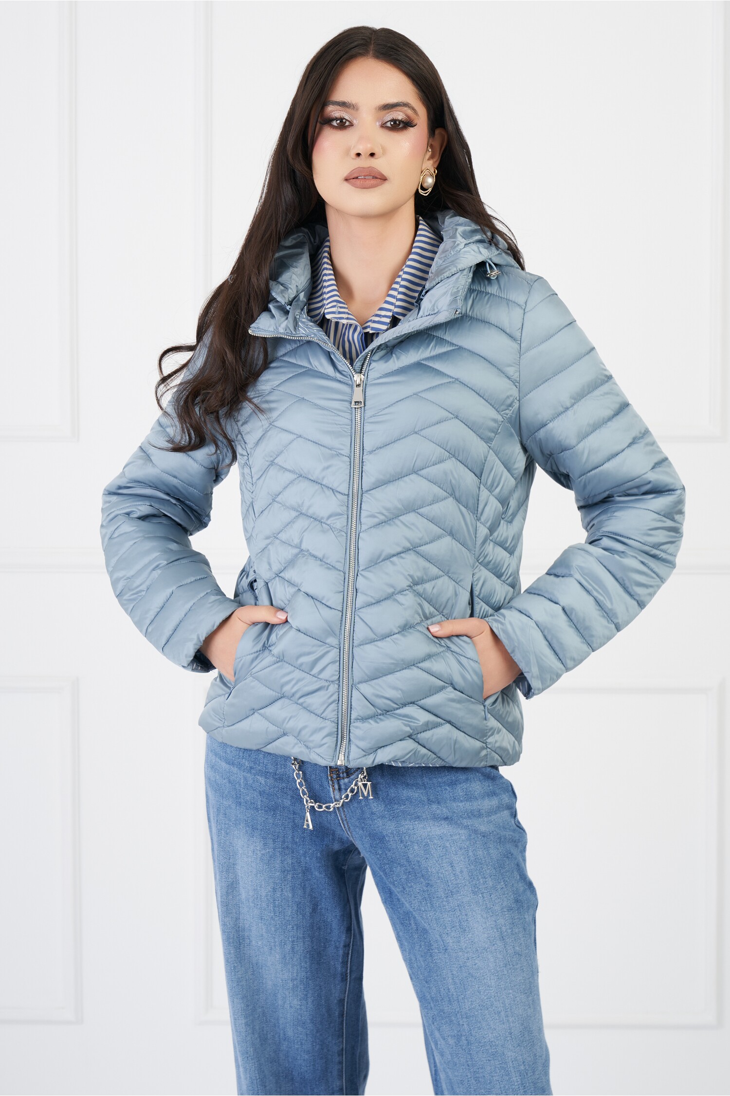 Geaca Luana bleu matlasata cu gluga si buzunare ascunse! La acest produs ai transport si retur/schimb gratuite! Livrare in Easy Box!