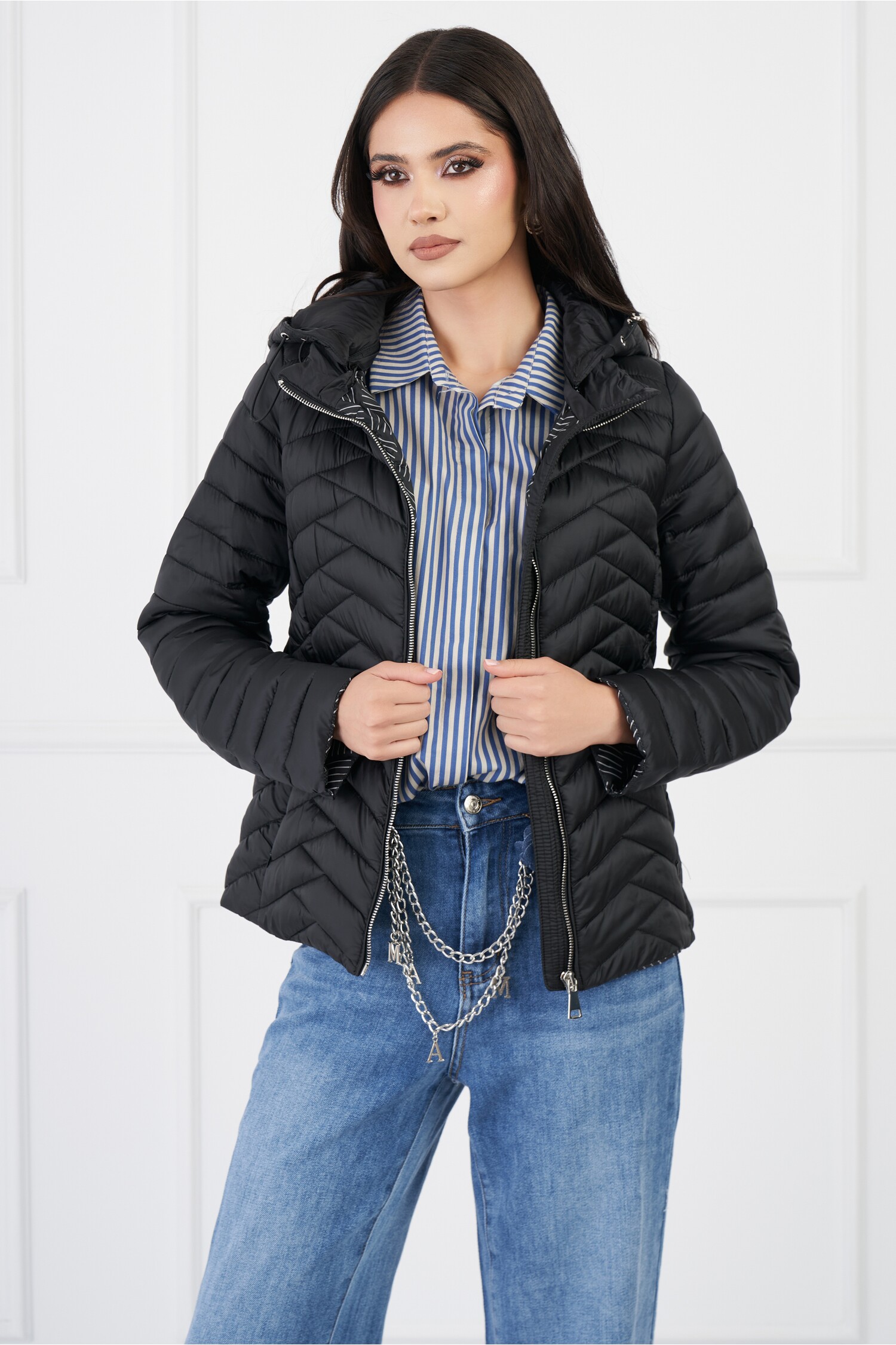 Geaca Luana neagra matlasata cu gluga si buzunare ascunse! La acest produs ai transport si retur/schimb gratuite! Livrare in Easy Box!