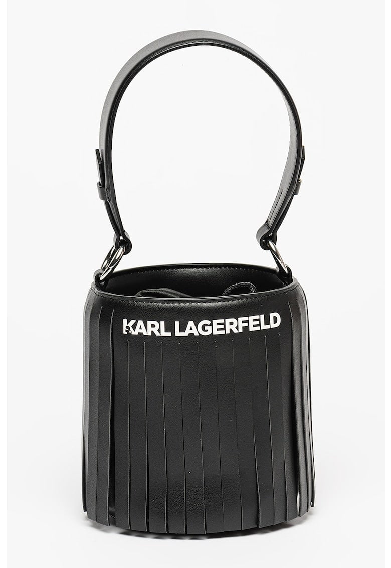 Specification: Geanta bucket de piele ecologica cu model cu franjuri K/Fringes