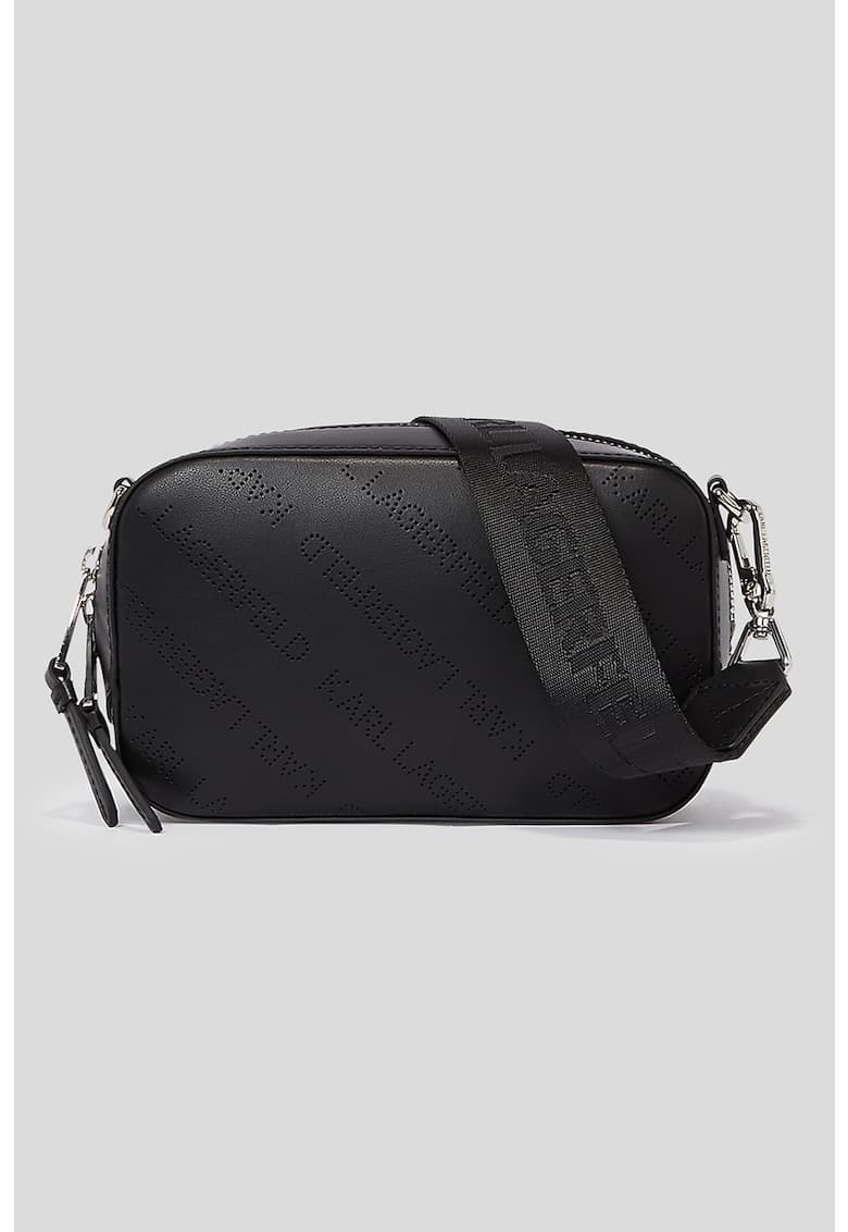Geanta crossbody de piele ecologica cu logo cu perforatii K/Punched